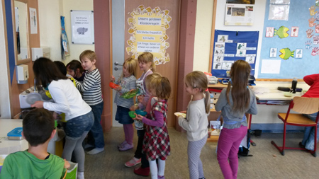 Da ist es von Vorteil, dass die Drittklässler generell eine Stunden Sachunterricht mehr im Stundenplan stehen haben als die Erstklässler: