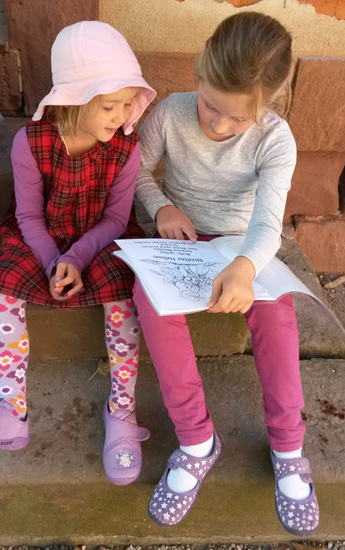 Während die Drittklässler ihre Gedichte bereits abschreiben und gestalten, bekommen die Erstklässler ihre (noch kürzeren) Gedichte in abgetippter Ausführung in ihr Gedichteheft geklebt. Wie gut, wenn man als Nichtleser einen großen Schüler an der Seite hat, der einem beim Vorlesen und Auswendiglernen unter die Arme greift. Aber auch die Großen lernen dabei: Sie trainieren das betonte sowie fehlerfreie Vorlesen und reflektieren ihre eigenen Tricks zum erfolgreichen Auswendiglernen.