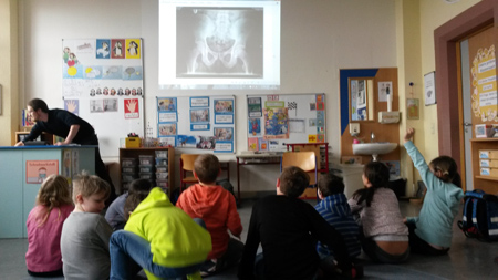 Während sich die Erstklässler u.a. hauptsächlich damit beschäftigen, warum ihre Milchzähne ausfallen und wie Karies entsteht, geht es bei den Großen um das Skelett, die Muskeln und Gelenke, um das Herz, das Blut, die Atmung und die Verdauung.