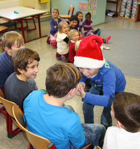 In den Reflexionsrunden berichten die Drittklässler den Erstklässlern stolz, was sie herausgefunden haben.