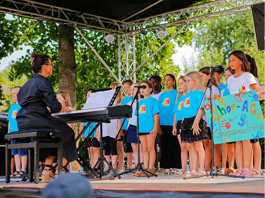 Mit einem fröhlichen Auftritt war unser Grundschulchor unter der Leitung von Julia Przybylik beim Ettenheimer Bürgerfest am 17. Juni dabei.