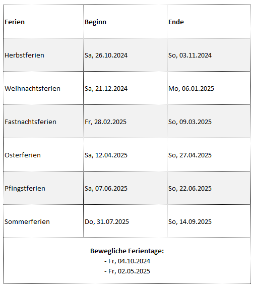 Ferien im Schuljahr 2024/25